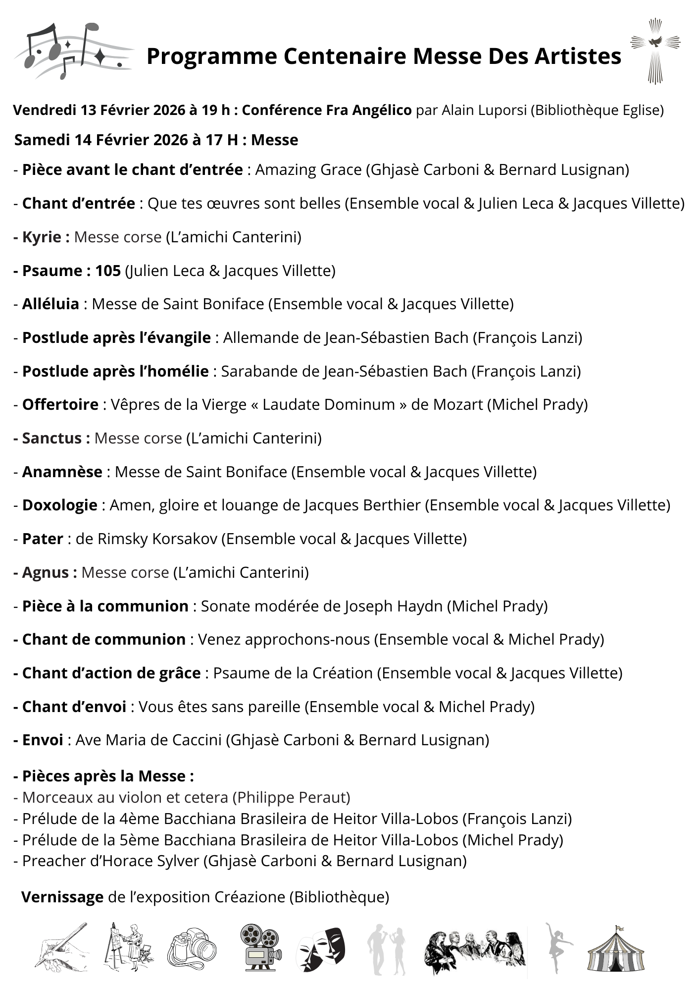 Centenaire Messe Des Artistes 13 et 14 février 2026